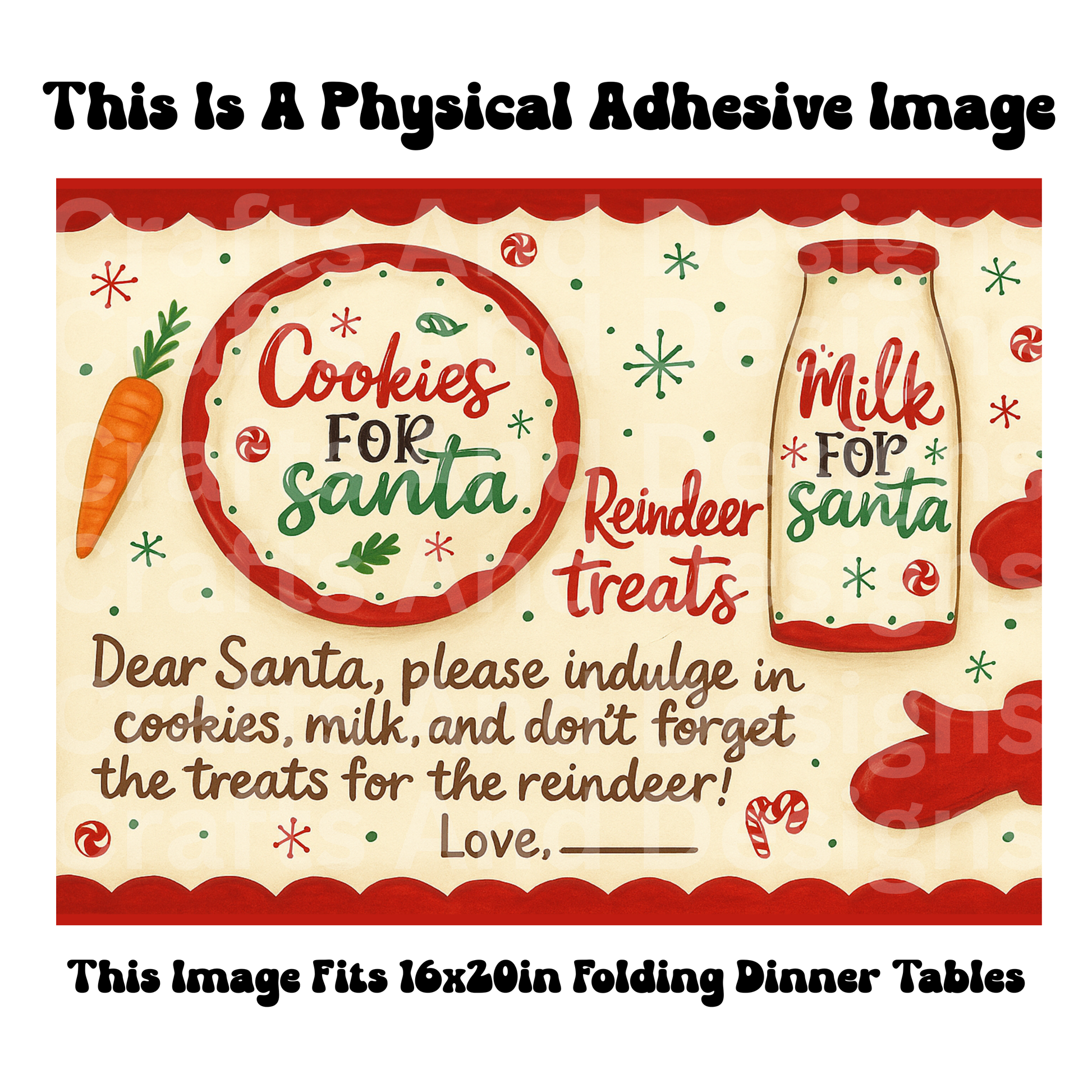 Physical Adhesive Image Transfers, specially made to fit standard 16×20-inch folding tables!